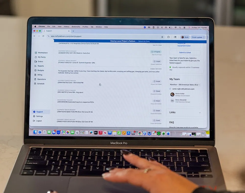 We built the Crafty Platform to give you visibility into every detail of your program. We ensure every pantry is serviced consistently and beautifully by keeping your standards clear and your team aligned across every location.